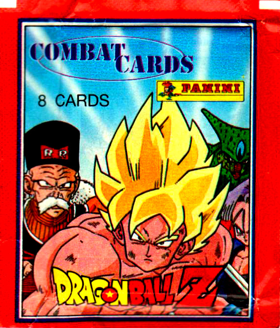 Otra colección digna de ser recordada. Salieron poco después de las de Ediciones Este, seguramente siguiendo la estela de su éxito a pesar de su escasísima calidad. Los italianos de Panini sólo tenían que mejorar una fórmula que funcionaba y vaya si lo hicieron: los dibujos de las Combat Cards molaban. Cierto es que no estaban a la altura de los originales nipones, pero a los niños, que por aquel entonces lo máximo que teníamos en cuanto a merchandising de Dragon Ball eran fotocopias borrosas, estos dibujos a todo color lo tenían todo para triunfar. También estaban dibujados por hispanos -detrás de las tarjetas encontramos que sus autores son unos tales «Artcelona», con lo que deducimos, tras mucha investigación, que son artistas y de Barcelona- pero la verdad es que estaban currados. Además, a diferencia de las de Ediciones Este, colección llena de ilustraciones originales (incluso MUY originales, diría yo) las de las Combat Cards estaban realizadas a imagen y semejanza de escenas de la serie de TV en su mayoría, con lo que la similitud con los dibujos auténticos estaba asegurada. Creo recordar que la colección rondaba las 120 tarjetas, y se vendían en sobres de 8, como podéis ver en la imagen de arriba.