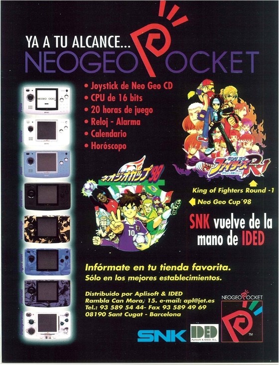 Alikt, no estoy nada de acuerdo contigo, si SNK hubiera respaldado a su portátil como debería, tenían dos años de margen para hacerse con una porción más que suficiente de mercado como para plantarle cara a la futura GBA (NGP data de 1998 y GBA de 2000, más o menos un año más tarde en Europa).