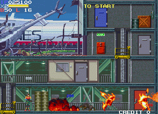 Cada piso tiene un montón de elementos destructibles, cómo barriles, cámaras de seguridad, cajas de madera, etc, que podremos destruir para conseguir items (también si accedemos a las puertas azules). EAR posee esa contundencia que conformaba los grandes arcades, obligándonos a machacar los botones como posesos para eliminar a las hordas de enemigos, que no lo ponían nada fácil. Además, contaba con luchas contra final-bosses, algo que siempre es de agradecer, por eso de que aportan el necesario componente episódico.