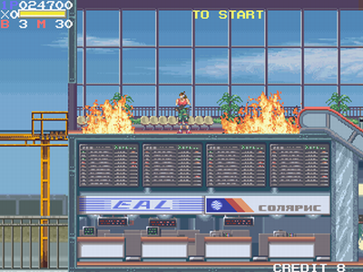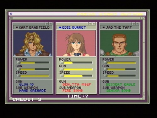 Si hay un juego que ejecuto siempre que me pongo a trastear con MAME, ese es Elevator action returns. Rompiendo el mito de que segundas partes nunca fueron buenas, la gente de Taito se sacó de la manga allá por 1994 un shooter como nunca habiamos visto. Aprovechando la fórmula del original, que consistia en llegar al piso inferior de un edificio montándonos en ascensores, recopilando documentos y matando sicarios, estos japoneses tan mañosos crearon un arcade tan desafiante como agradable a la vista. Los escenarios, plagados de detalles y enemigos diferentes, a menudo eran destruidos por una bomba o algo que se estrellaba contra algún sitio, produciéndonos la sensación de estar caminando por entornos vivos y quebradizos. Su argumento nunca me preocupó en exceso, más que nada porque las secuencias que se muestran entre los niveles eran excesivamente «cute» en comparación a lo duro y sanguinolento del juego. ¿Es que les daba por tomar éxtasis después de cada batalla?